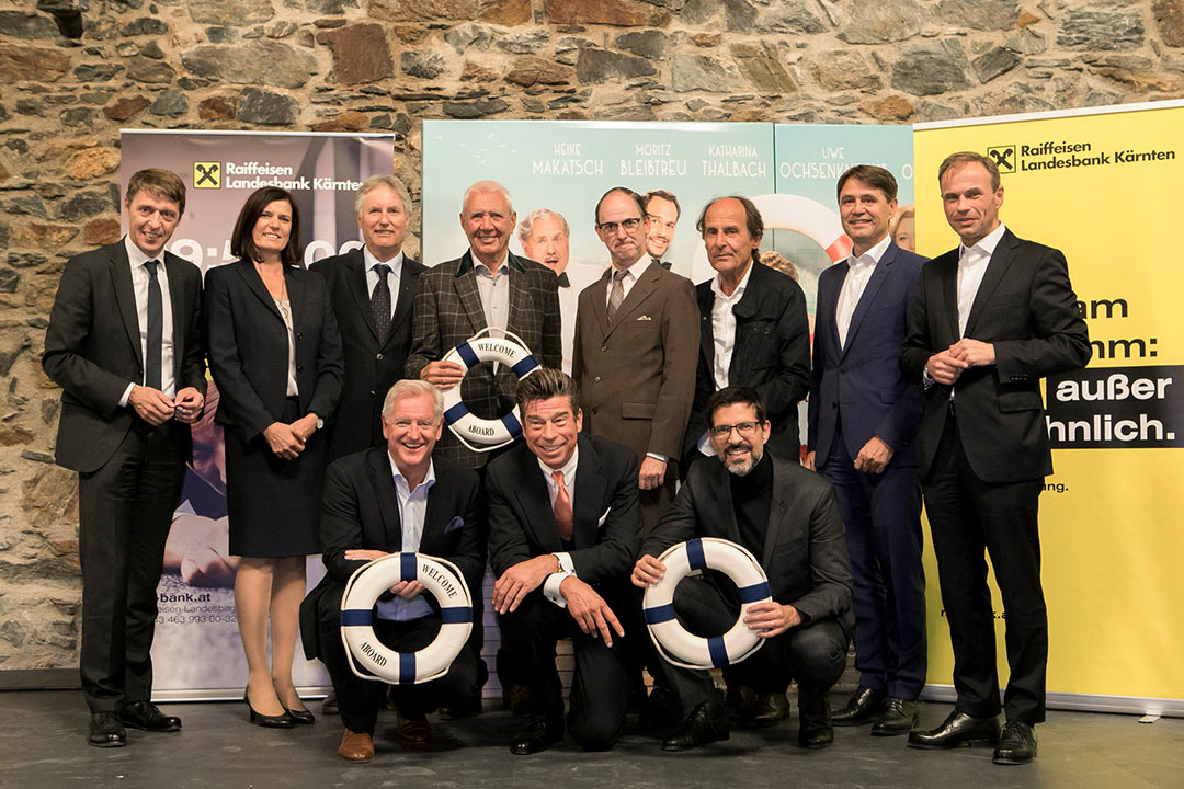 Taggenbrunn, 18.10.2019 – „Wo zum Teufel ist Ihr … Begrüßungschampagner!“ Mit diesen Worten wird die blinde Passagierin Maria (Katharina Thalbach) auf der MS Maximiliane begrüßt. In Anlehnung an das Kinozitat überraschte die Raiffeisen Landesbank Kärnten die 400 geladenen Premierengäste vor der Filmpräsentation mit einem Jaques Paagnier-Empfang. „Unsere Kunden stehen für uns als führenden Bankpartner immer an erster Stelle und im Mittelpunkt. Genau aus diesem Grund freut es mich ganz besonders, dass wir heute diese einmalige Gelegenheit haben, unsere Kunden einzuladen und uns für die Partnerschaft, Treue und das Vertrauen in die Raiffeisen Landesbank Kärnten bei allen zu bedanken.“ betonte Vorstandsprecher Peter Gauper und freute sich über die erfolgreiche, langjährige gute Zusammenarbeit mit Klaus Graf und seinem Team.